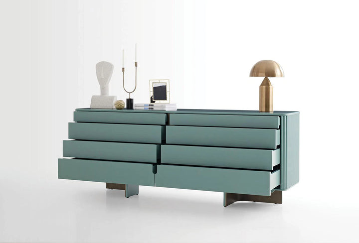 Offering ample storage space with 8 drawers, the ATHENS CHEST OF DRAWERS has a lacquered surface on an MDF base, providing an elegant appearance. The combination of MDF and metal used in the legs offers a rich choice of materials.