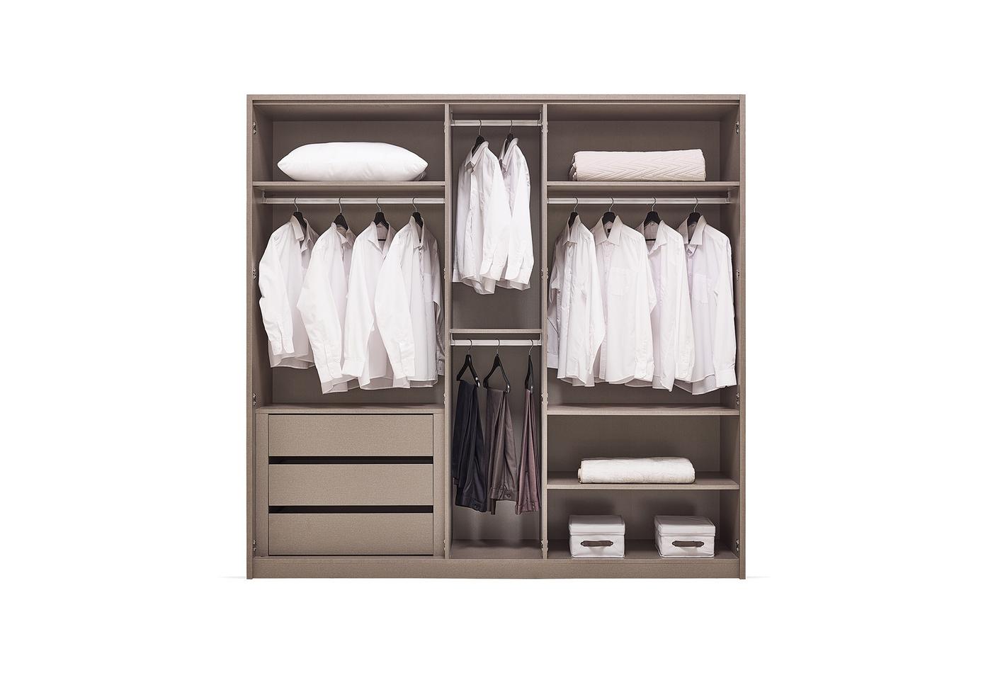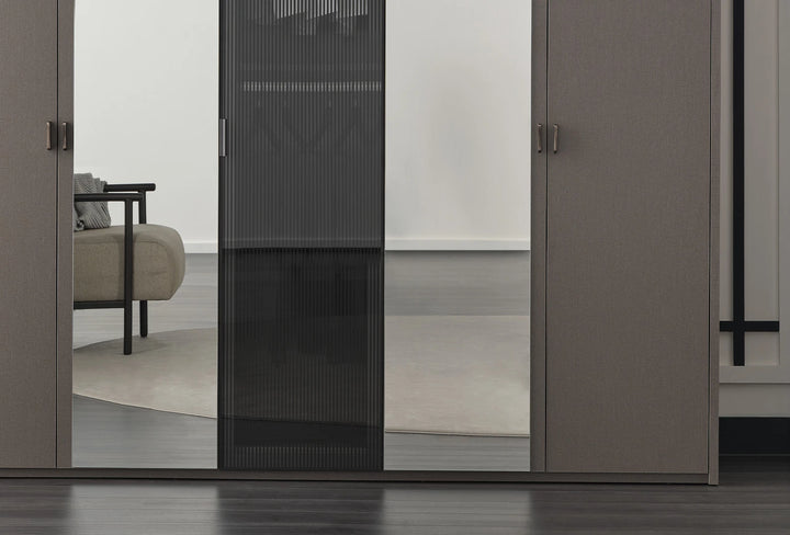 With its antique bronze-colored metal handles and natural-colored mirror and glass door applications, it adds a high-level aesthetic touch to bedrooms.