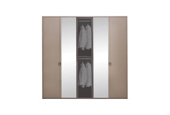 Enriching the contemporary decorative style with stunning design details, the BERTA 5-DOOR WARDROBE perfectly complements the modern elegance of the series.