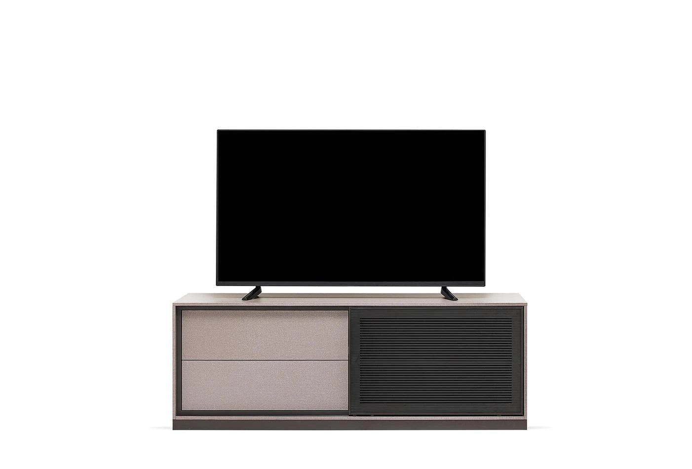 The BERTA TV CABINET LINE, which combines versatile functionality with quality design, is given an original and refined appearance by the use of Enza Home's special textile-effect surfaces, while its antique bronze-colored metal handles are aesthetic and functional.