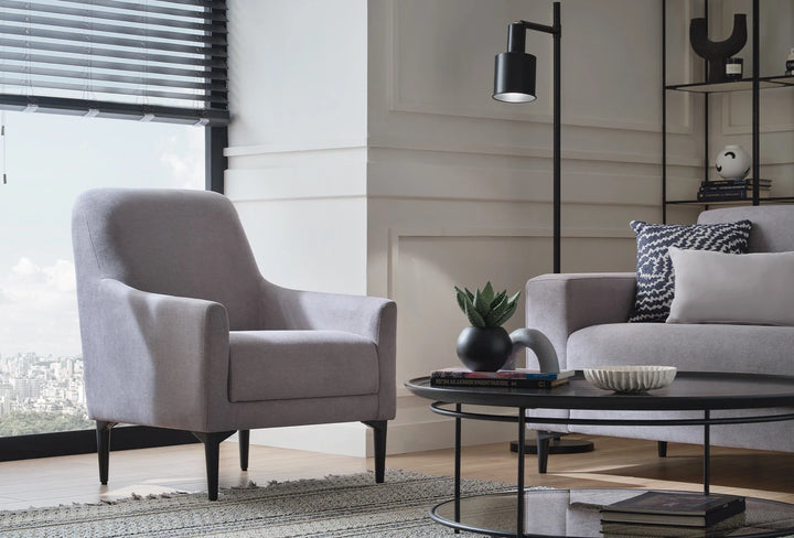 The BRIZA ARMCHAIR is modern and stylish, and is also extremely elegant. Its black metal legs enhance its modern look, and its high legs and washable fabric make it practical and easy to keep clean.