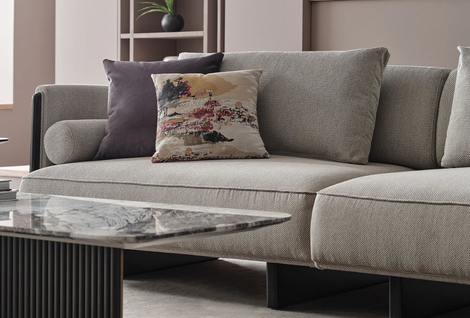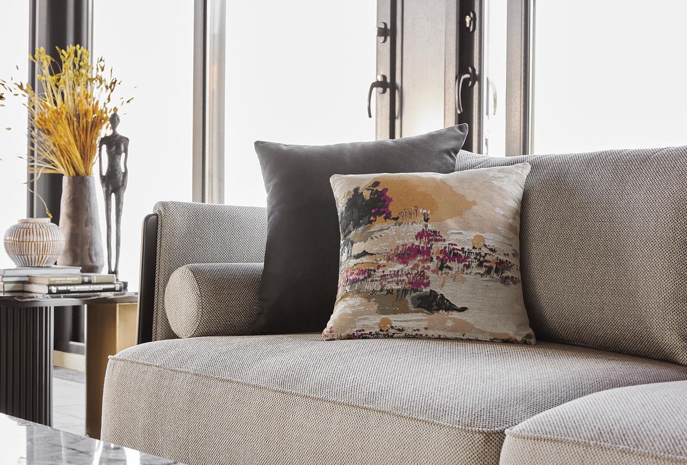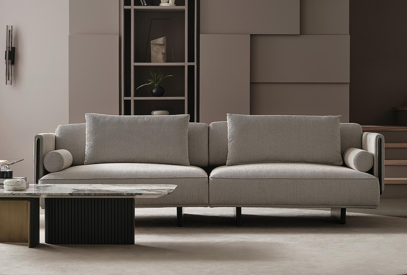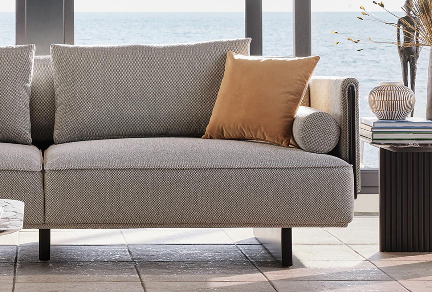 The modern-style CANTON 2.5-SEATER SOFA from Enza Home's Visions 2023 series offers maximum comfort with its multi-layered seat and back cushions, which can be easily removed to increase the seat depth.