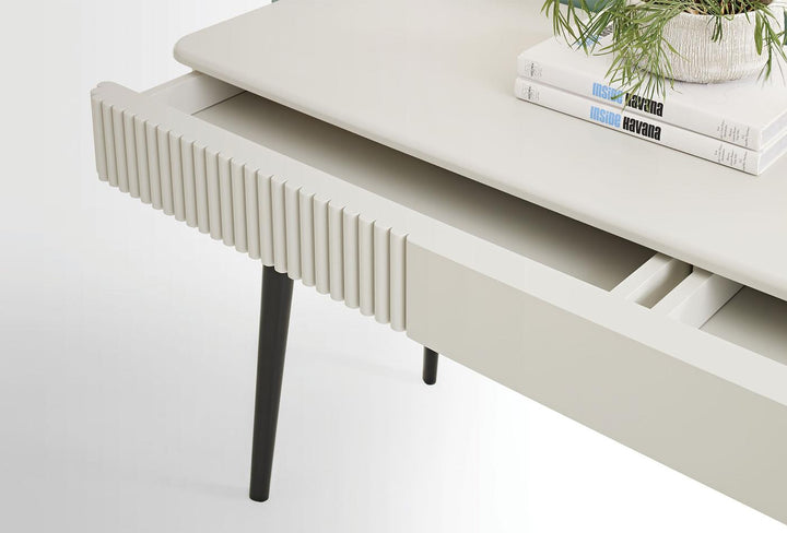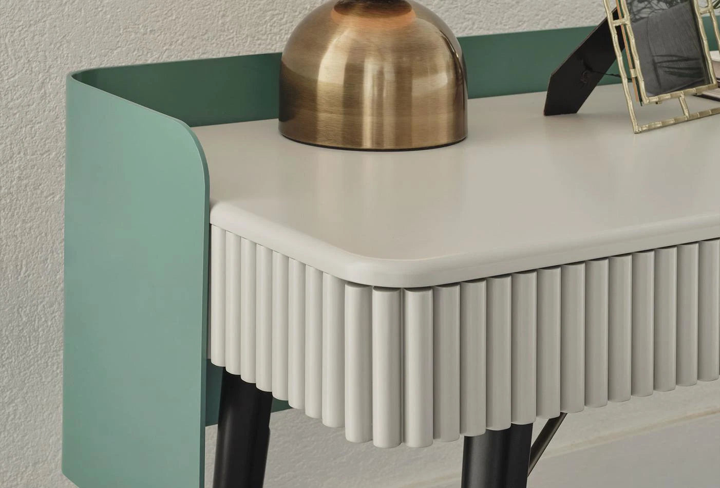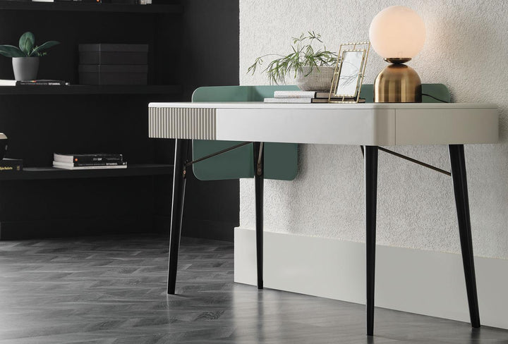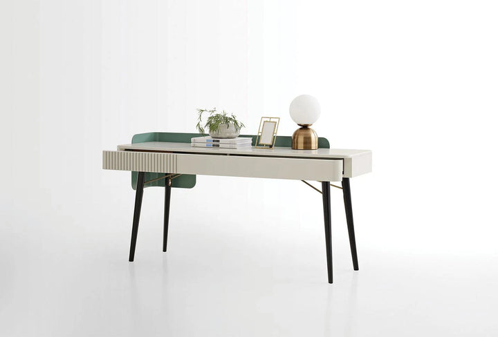 The DUBLINO dressing table from the Visions series offers an elegant design adorned with quality details. Its MDF and metal frame combines durability and elegance, while its wooden leg structure adds a unique touch.