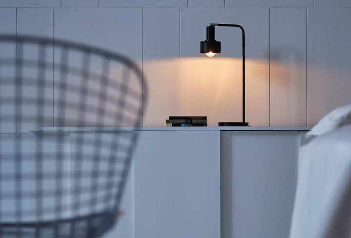 The FAMA LAMP FAMILY represents a modern industrial style, which is why black metal is combined with chrome details. It is characterized by a simple yet great use of geometric shapes.