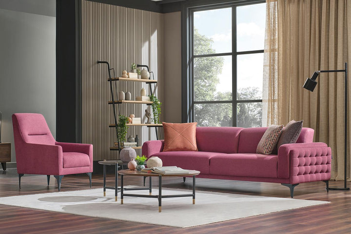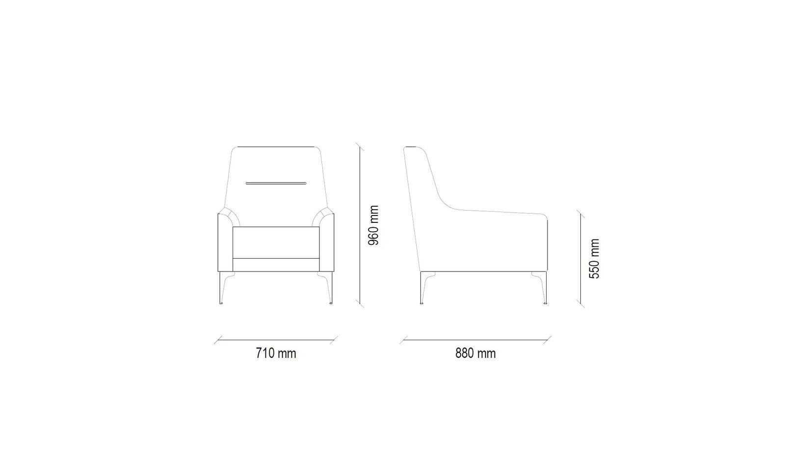 The unique stitching of the FORTUNA CHAIR's backrest is very elegant, and it also enhances comfort, and its seating comfort is outstanding. Its metal legs are available in anthracite or walnut. It is much easier to clean under the high legs, so the furniture is not only beautiful, but also practical.