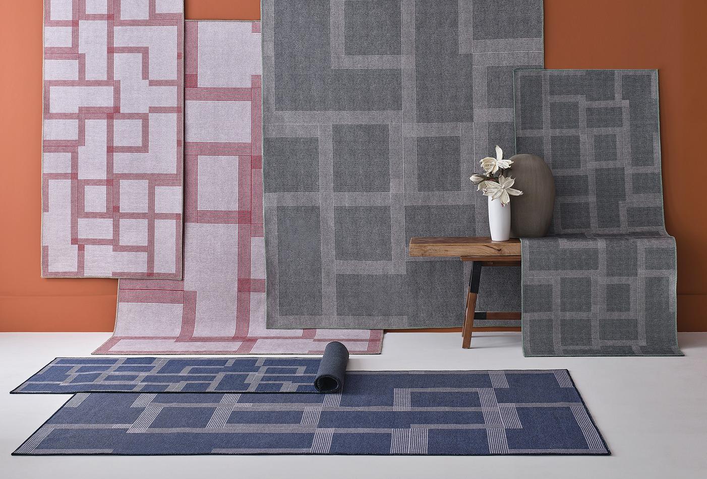 The shepherd's stitch on the edges is handmade, emphasizing the naturalness. The decorative GEMAR CARPET with a modern woven base structure, highlighted by design details, changes the atmosphere of homes.