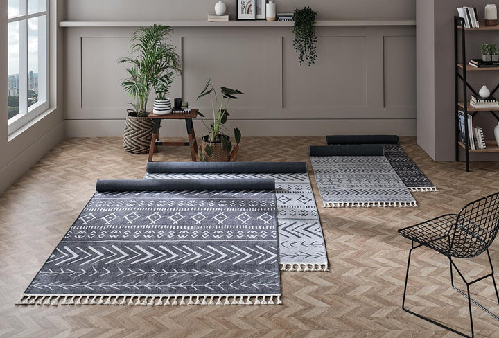 A GENE SZŐNYEG, pamut alapon lévő nyomtatott részleteivel eltérő textúrát ad a terek dekorációs stílusának, miközben puha és tartós poliészter szerkezetével kényelmet kölcsönöz az élettereknek.
