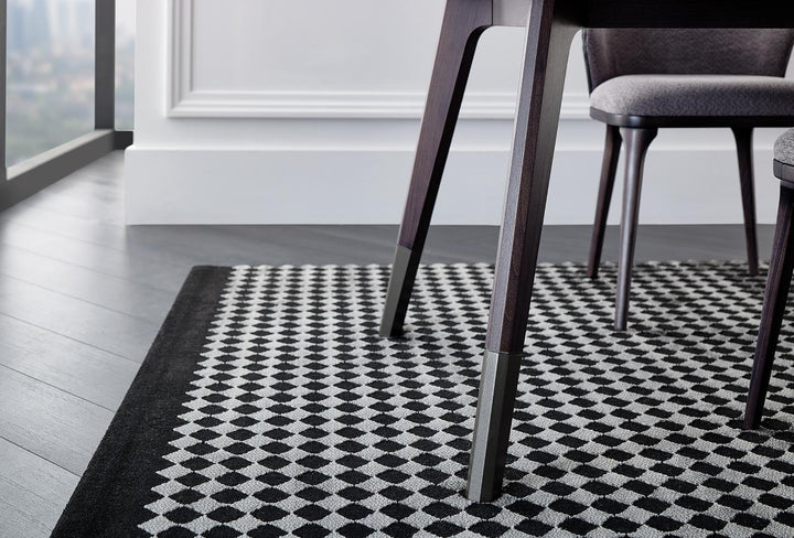 The special gray application on the bottom of the dining table legs creates a modern decor.