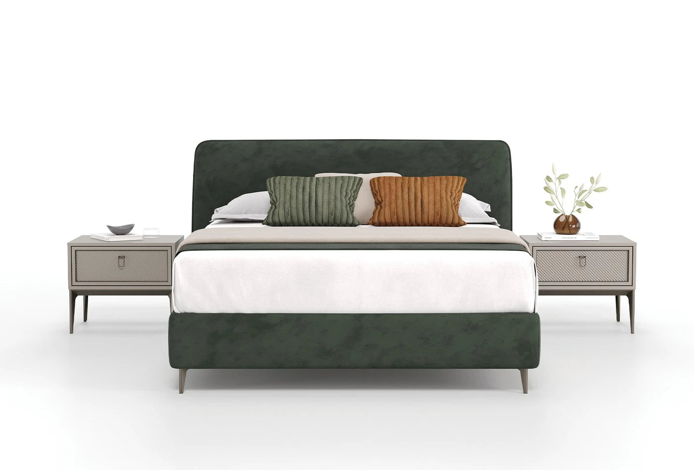 With its edgy headboard and strong metal legs, the remarkable HERA BEDDING SET, with its timeless design and solid structure, ensures years of use. Every detail harmonizes with modern decorations.