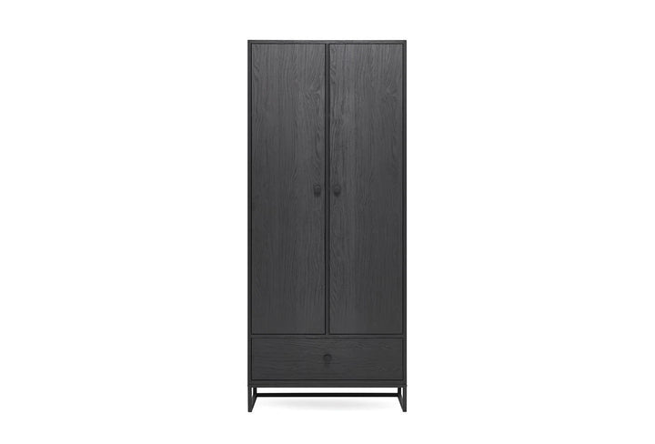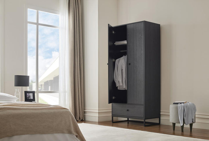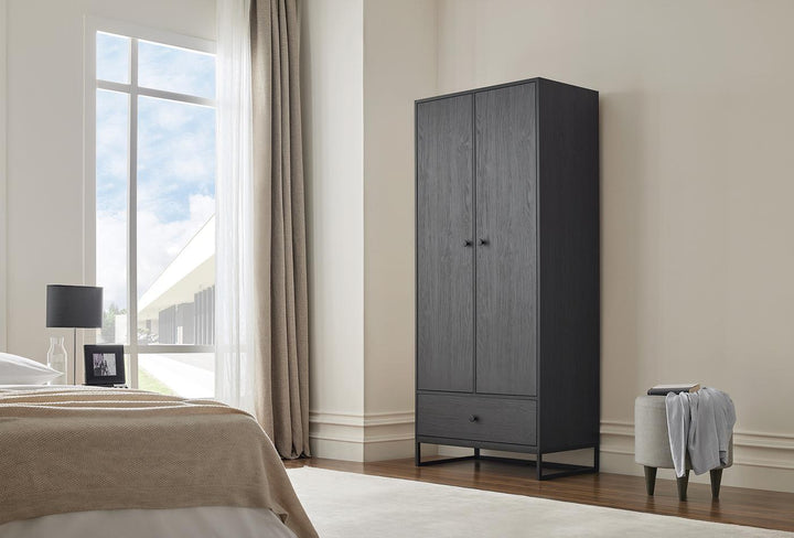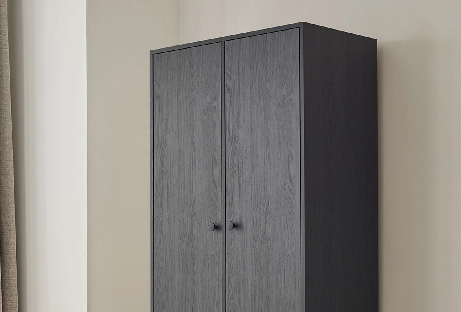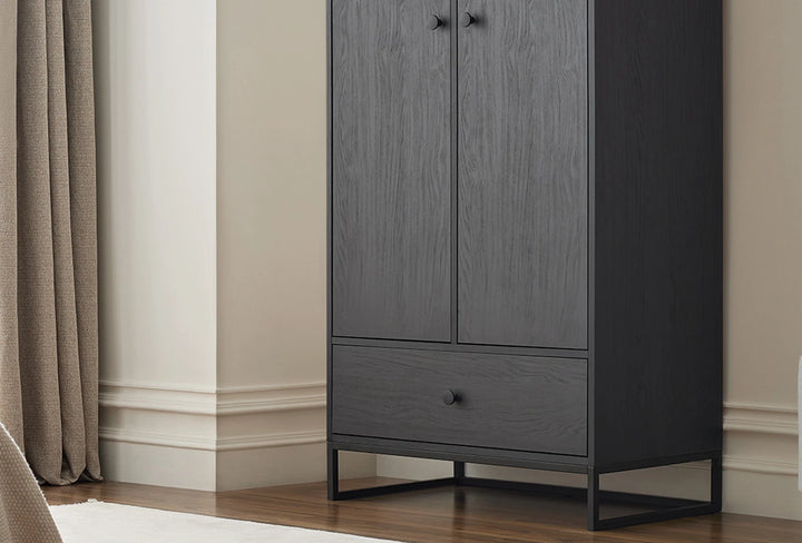 The KALINSTA 2-DOOR WARDROBE with a modern design attracts attention with its elegant details. The black metal handle and leg design allow the wardrobe to harmonize with different designs.