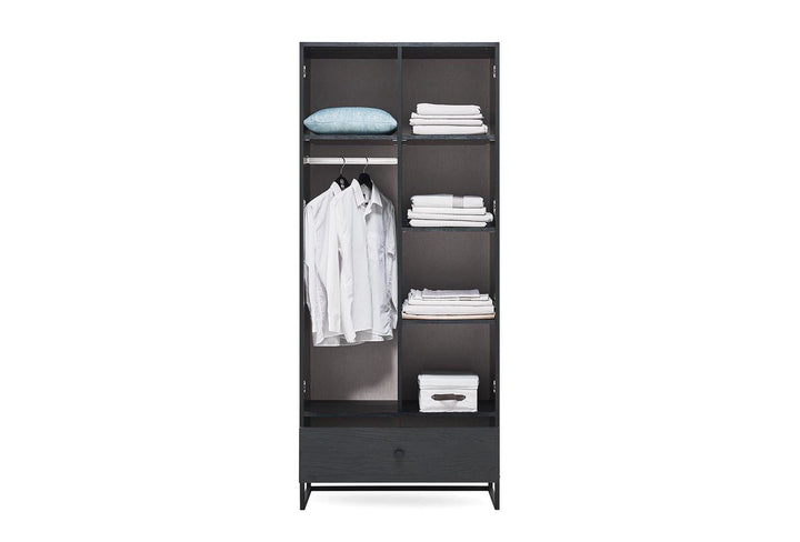 In addition, the KALINSTA 2-DOOR WARDROBE is available in white, walnut and black color variants. The drawer application located at the bottom of the wardrobe provides the user with multifunctional storage space.