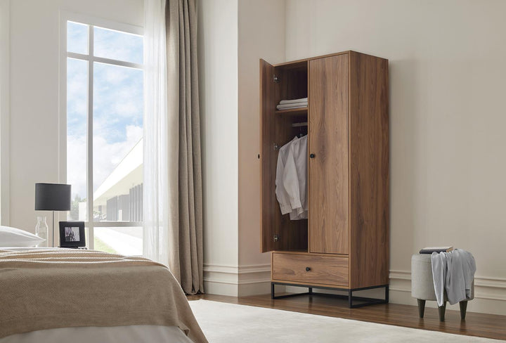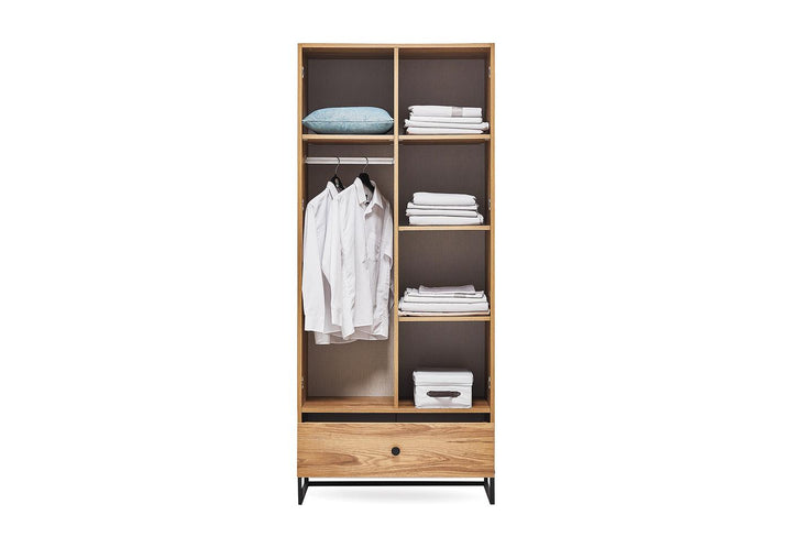 In addition, the KALINSTA 2-DOOR WARDROBE is available in white, walnut and black color variants. The drawer application located at the bottom of the wardrobe provides the user with multifunctional storage space.