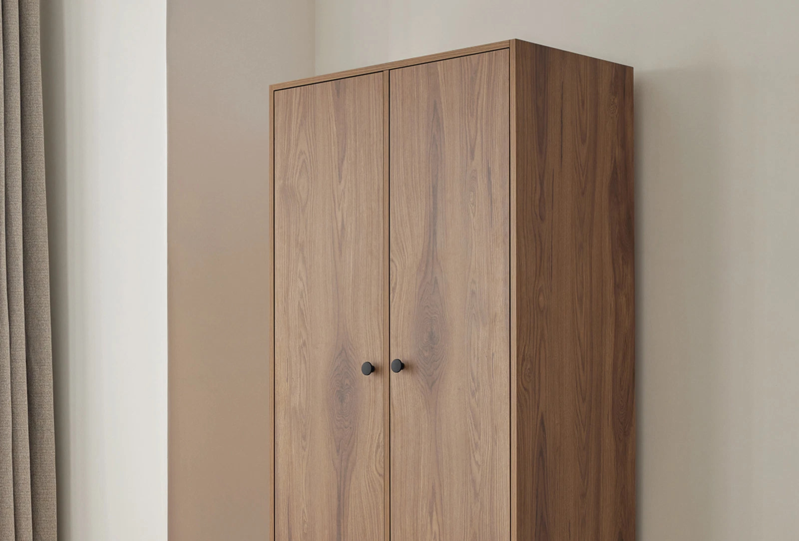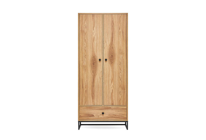 The KALINSTA 2-DOOR WARDROBE with a modern design attracts attention with its elegant details. The black metal handle and leg design allow the wardrobe to harmonize with different designs.