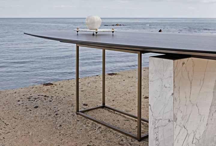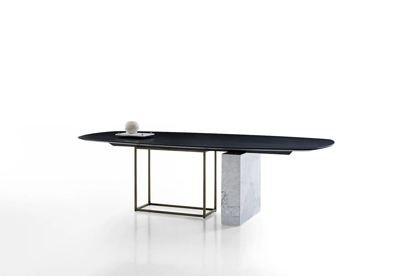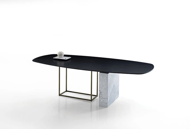 With its sophisticated and modern style, the KARTUM FIXED DINING TABLE brings timeless elegance to living spaces, and its elegant design provides a contemporary look. The black-painted oak tabletop gives the table an elegant aesthetic, while the metal and marble or ceramic leg options offer a rich combination of materials.