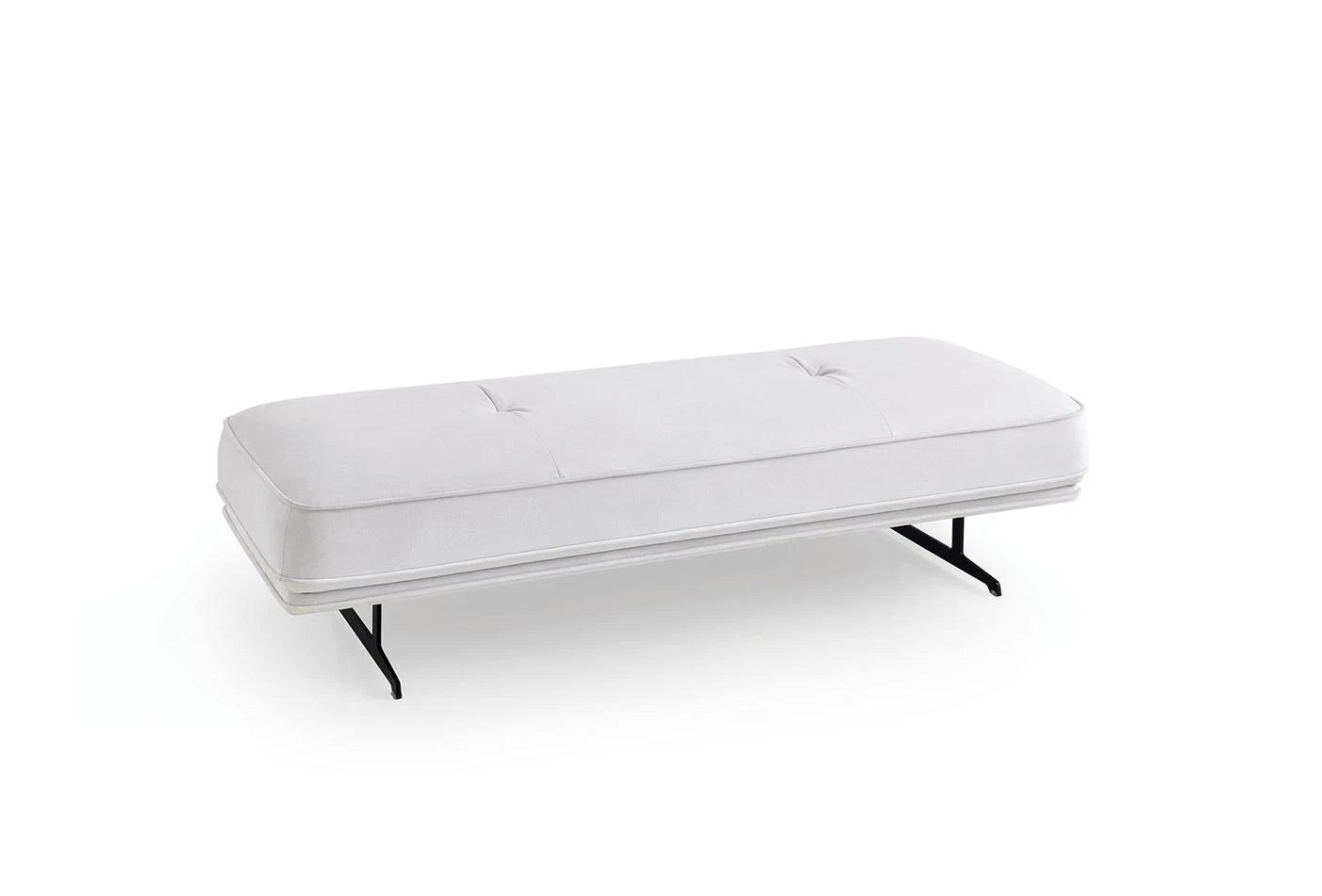 Its ability to harmonize with various decorative combinations makes it easy to use in any space. In addition, the elegant black metal legs that complement the series highlight the LAGOS bedroom pouf as an aesthetic and functional piece.