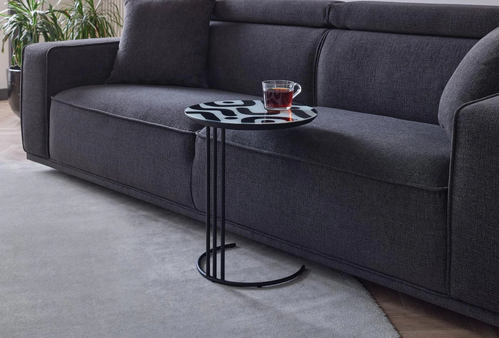 Combining naturalness with uniqueness, the LIVIA SMOKING TABLE is modern and sophisticated with its clean lines and black and white tabletop. The black metal legs bring modernity, while the round tabletop brings practicality to the design.