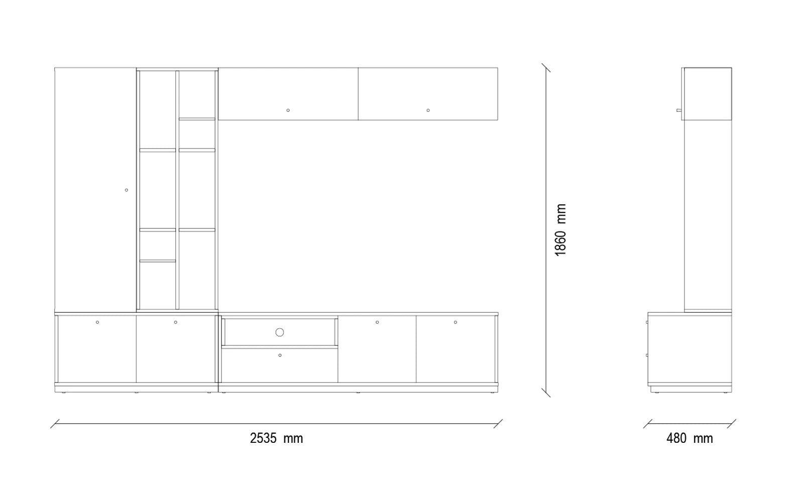 The LORETO shelving unit combines a dynamic design approach with a modern industrial style, giving rooms an aesthetic appearance.