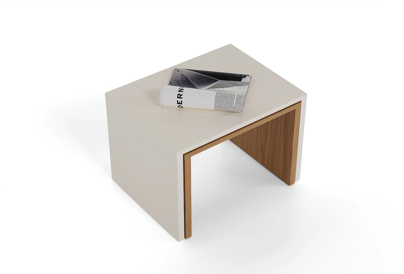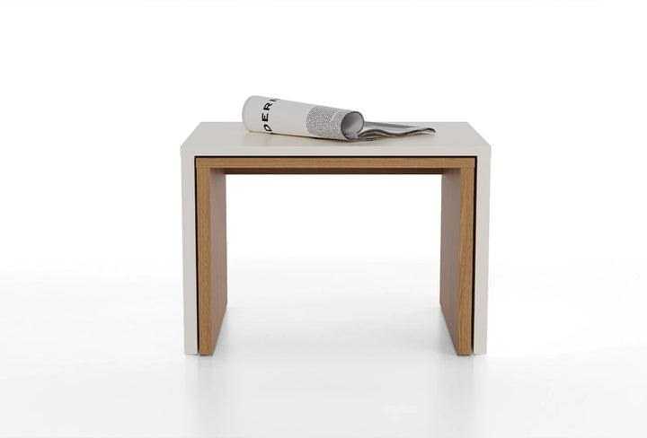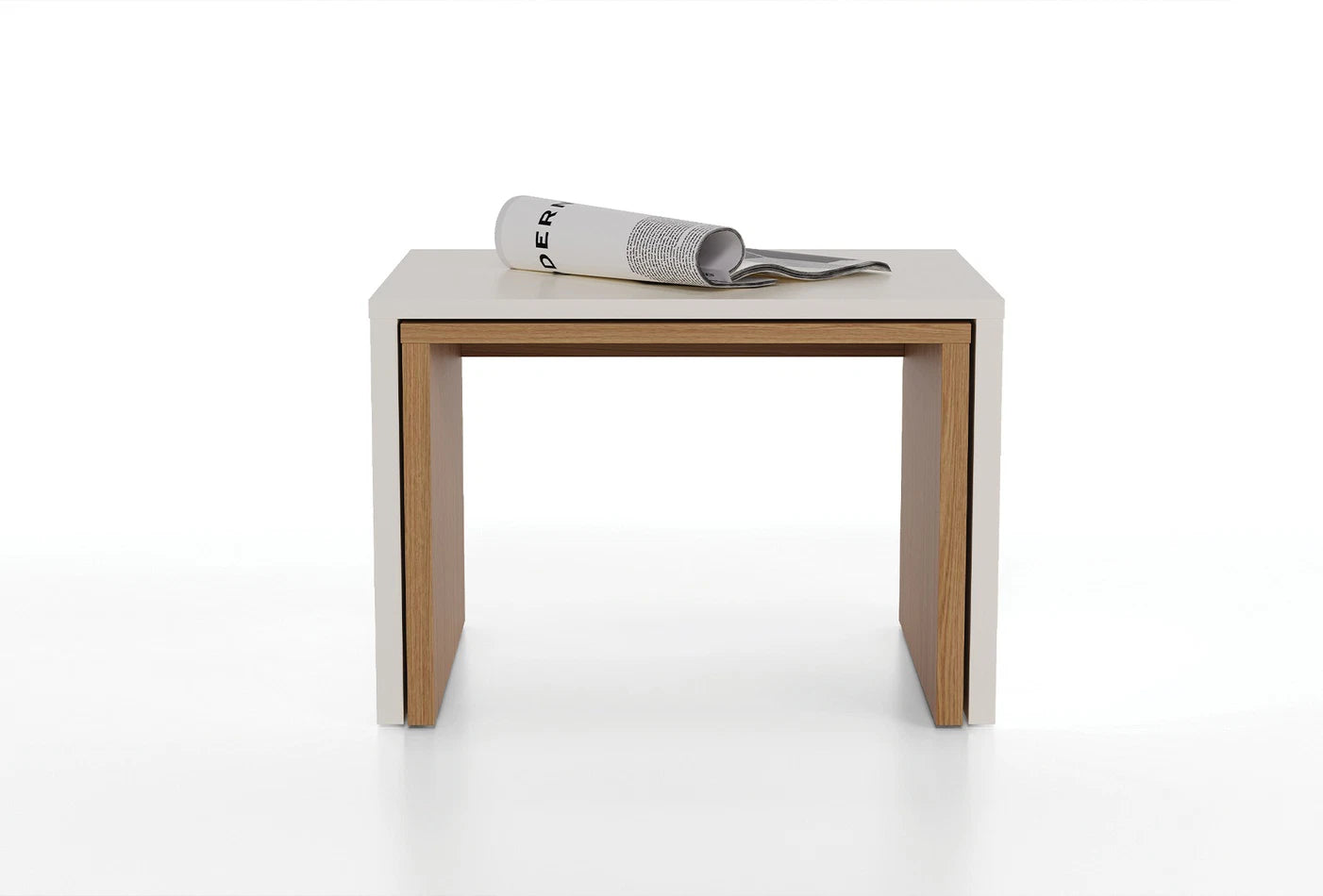 Carrying the clean aesthetics of country style in its lines , the MARSANA 2-PIECE SMOKING TABLE adds warmth to living spaces with its oak and cream color combination, while easily fitting into different decorative styles.