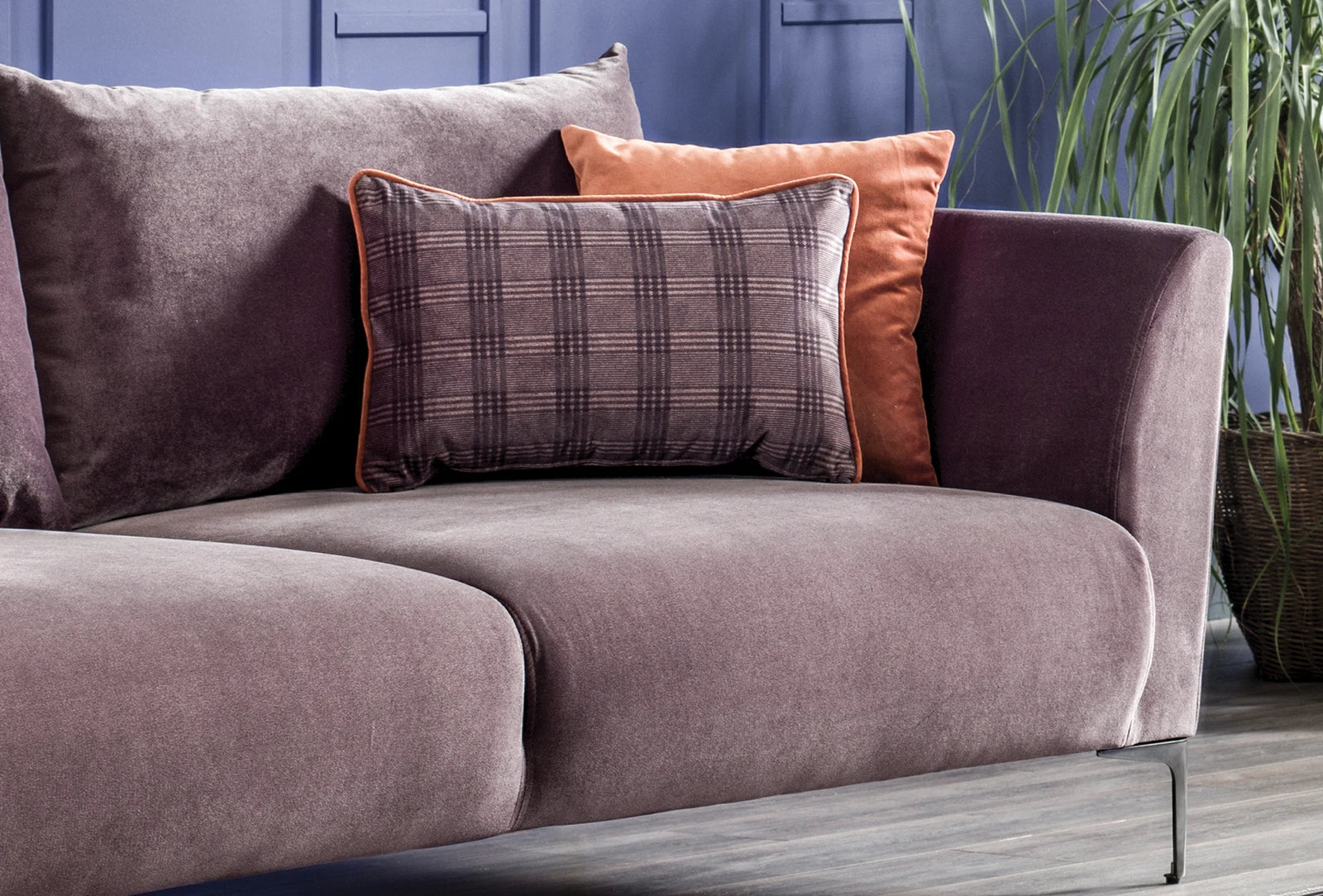Its comfortable, soft design is complemented by decorative pillows in various shapes, sizes and patterns.