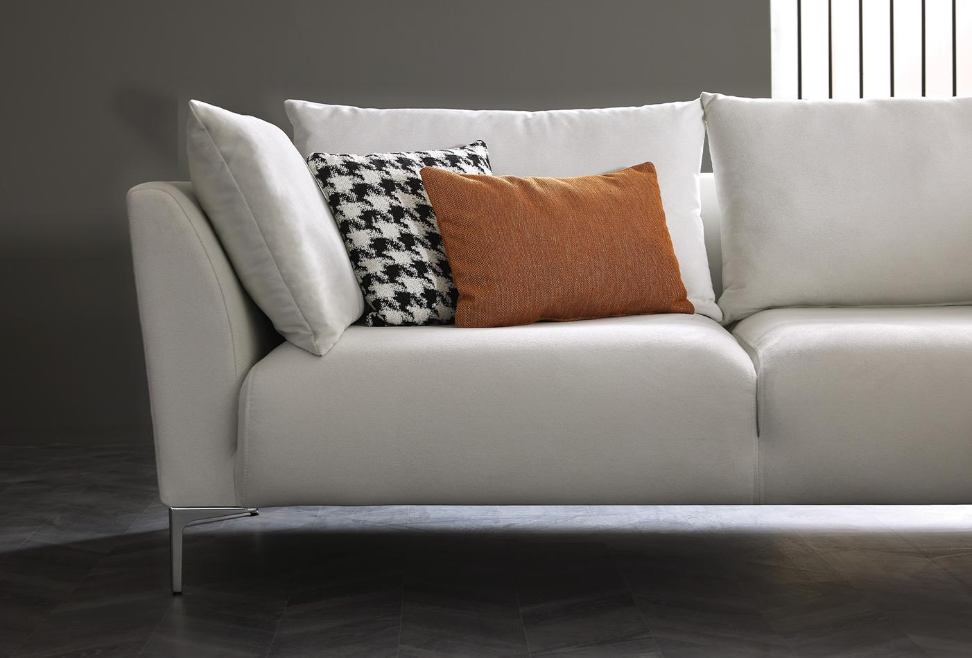 The MAYFAIR L-shaped sofa, with its full shape, soft touch and wide seating surface, maximizes the comfort expected in living spaces.