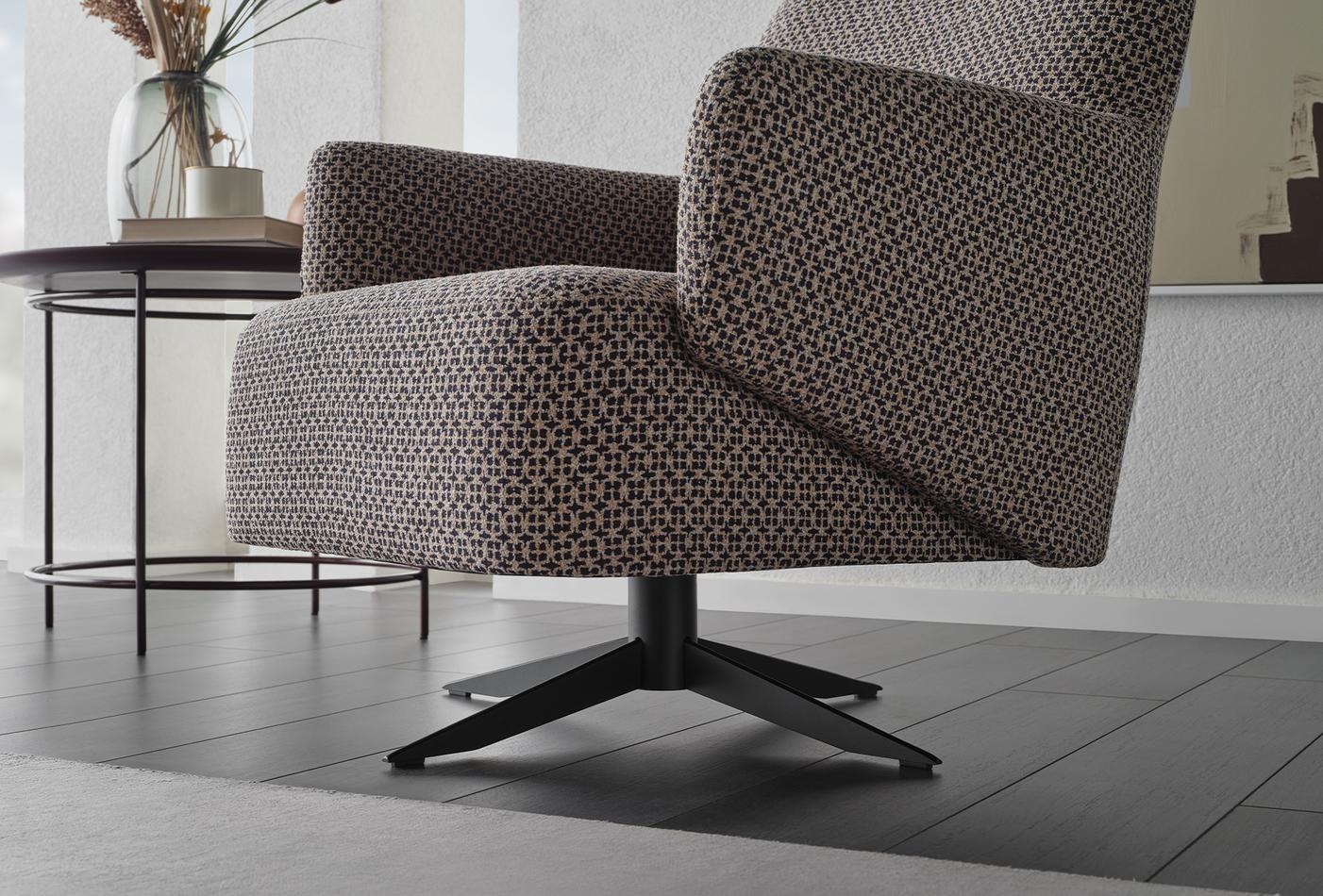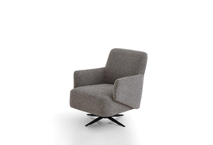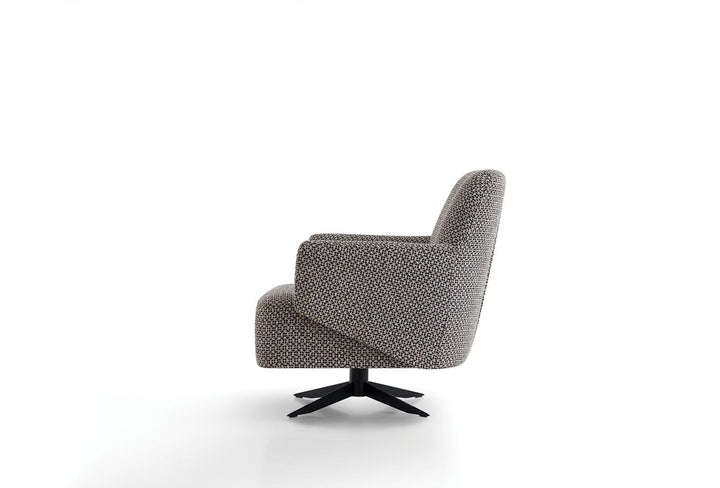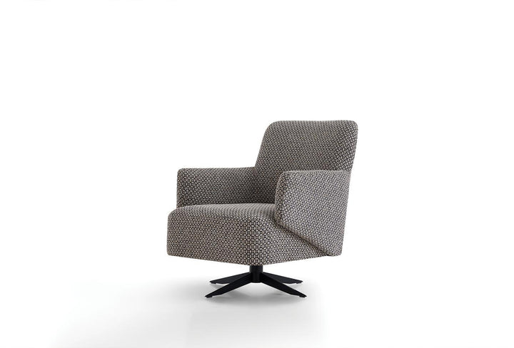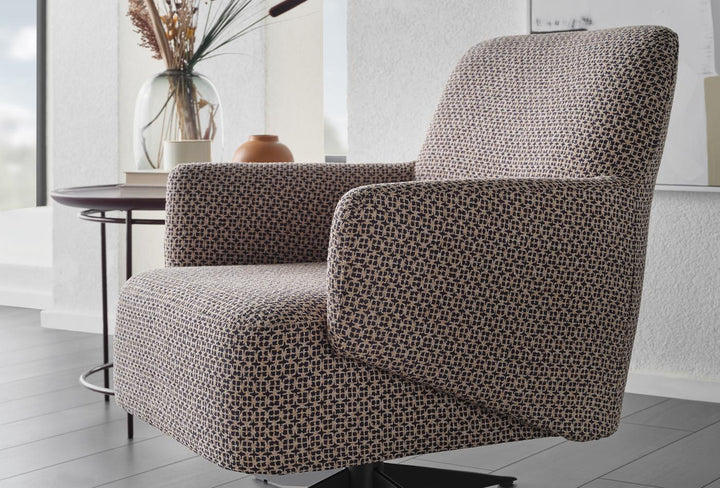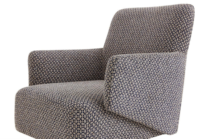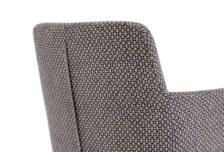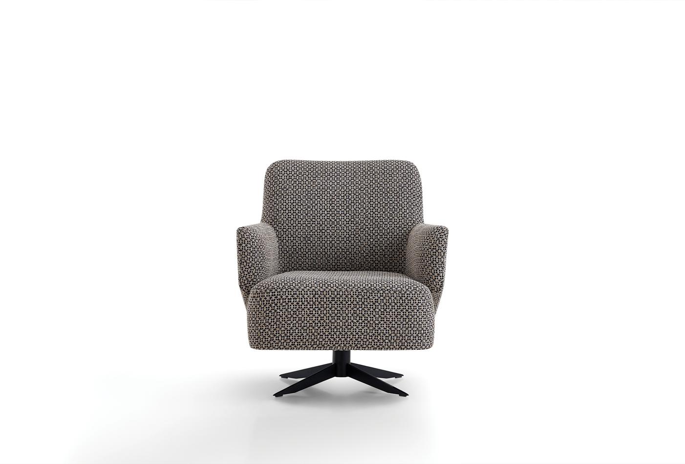 The black metal swivel base makes the PARMA SWIVEL ARMCHAIR a stylish piece of furniture, modern in every way. The swivel base and the special fabric are extremely practical, as it is easy to clean under the high leg, and the fabric is also easy to clean.
