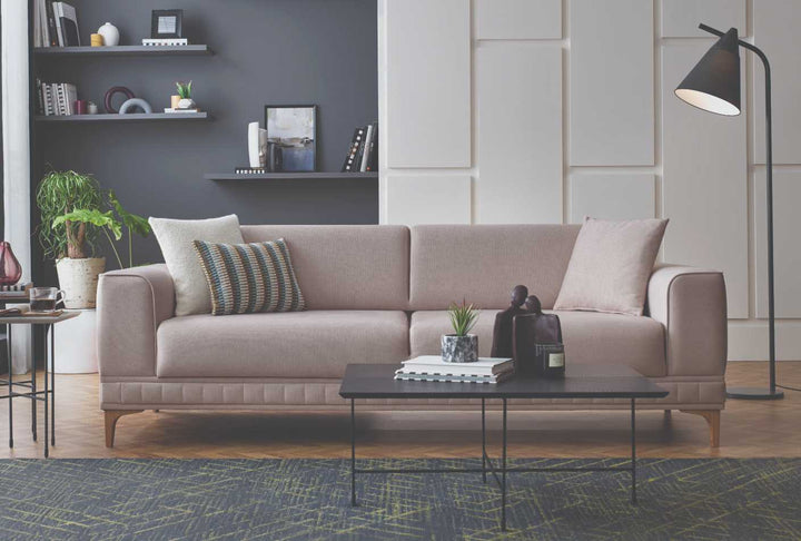 The PAVIA SOFA SET is comfortable, modern and elegant, radiating perfect harmony. Its stylish appearance is due to the quality materials and the naturalness of the wood.