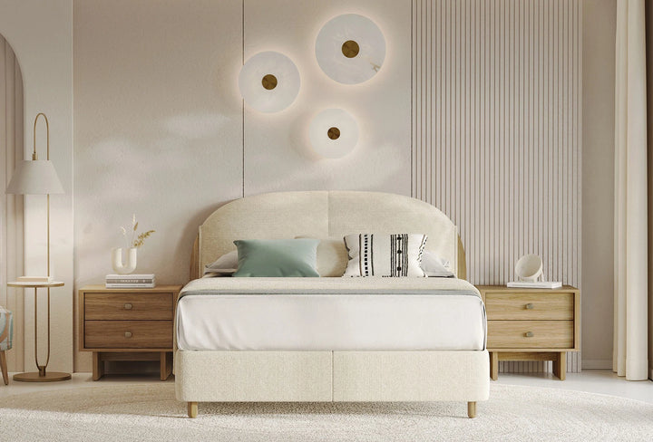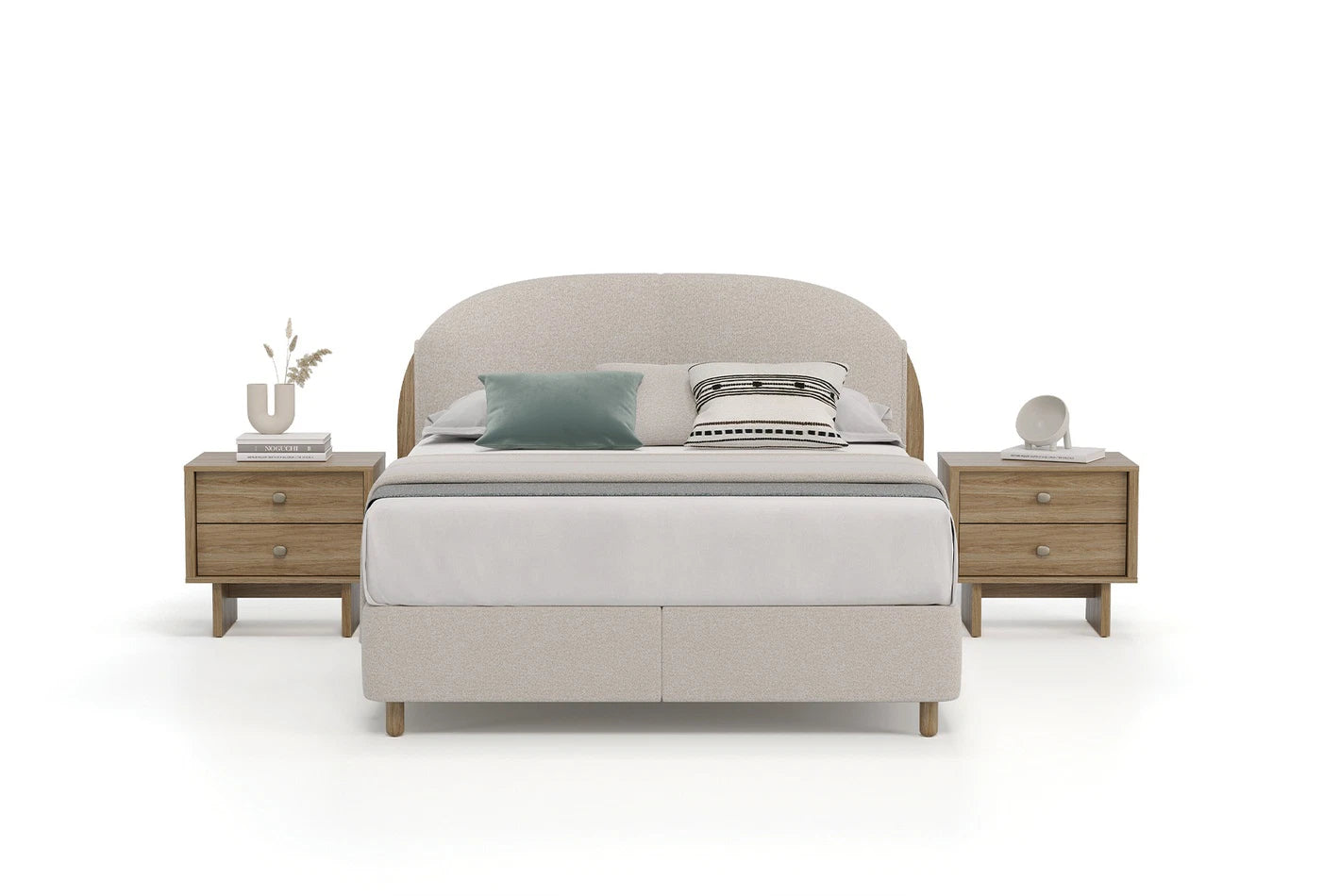 The unique and comfortable atmosphere of bohemian design comes to life in the PERGE BED SET. The oak-colored flap application on the headboard offers an elegant detail, while different bed base sizes provide a solution to suit your needs.
