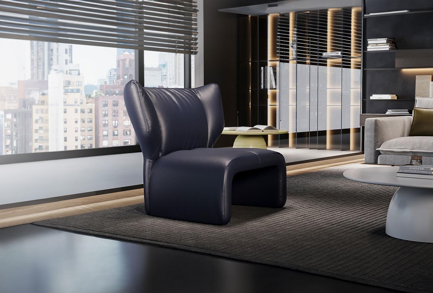 With its eclectic shape, sophisticated style and modern, rounded lines, the PUDDLE CHAIR represents a dynamic design. With its stunning, genuine leather upholstery and elaborate details, the PUDDLE CHAIR embodies quality and luxury at the same time. The genuine leather is bold and eye-catching, this armchair is guaranteed to become a dominant piece of furniture in your home.
