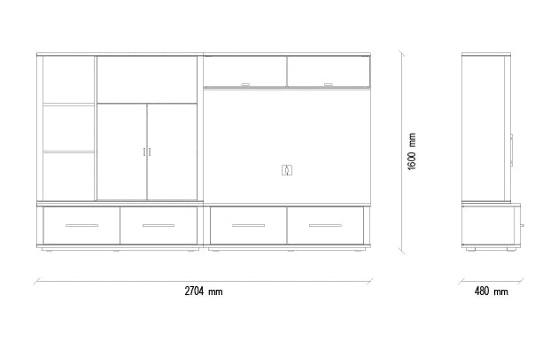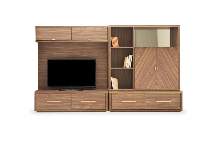 In addition to the two TV stand alternatives with plinths and legs in different sizes and shapes, a bookshelf, upper cabinet and display cabinet are also available, allowing for different combinations.