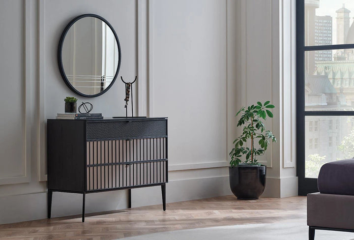 The RIGA WALL MIRROR's elegant appearance is both classic and modern. Thanks to its exclusive materials, it creates a unique harmony.