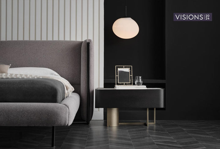 The SUVA NIGHTCARE, a product of the Visions 2024 series, stands out with its modern rounded lines and elegant design. Its top is covered with marble-like ceramic for a luxurious touch. The black color with a natural finish on an MDF base ensures the aesthetic and elegant appearance of the nightstand.