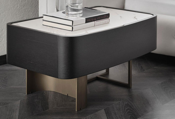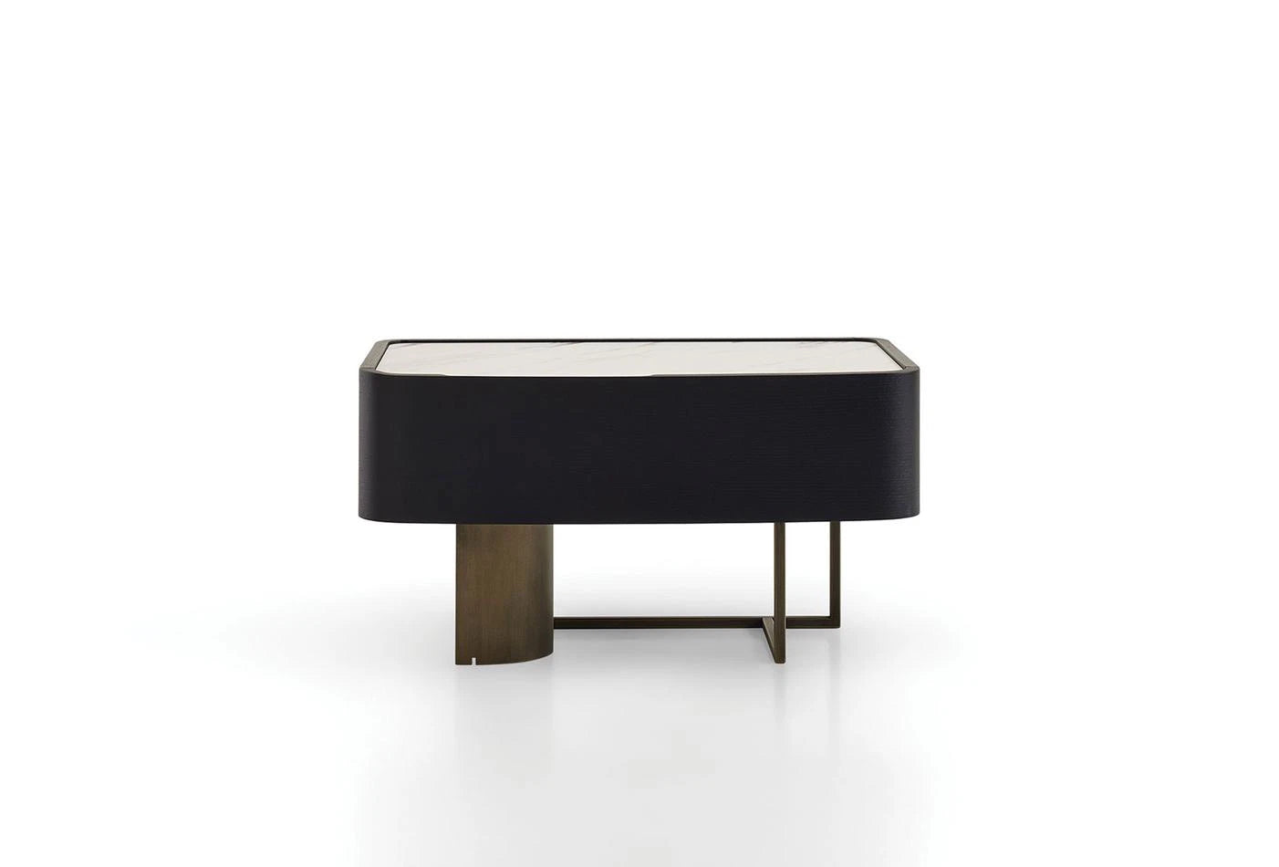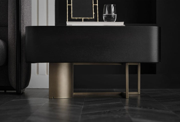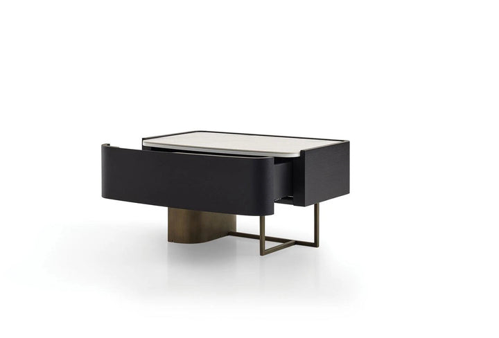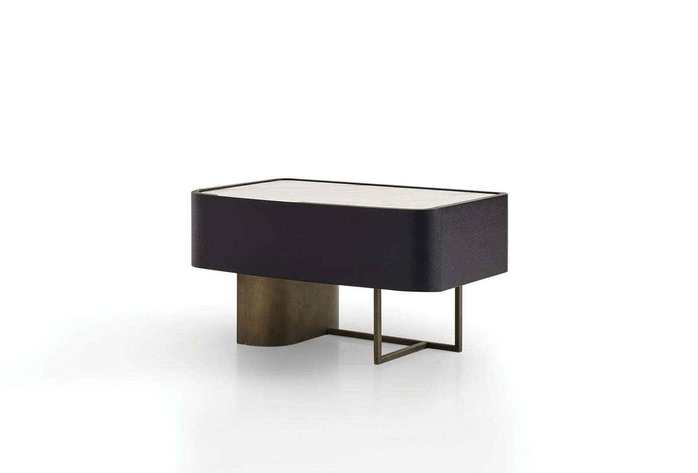 Designed with separate right and left modules, SUVA NIGHTCARE offers presentation elegance and flexibility of use in your home. Its metal legs and antique bronze color application form complementary elements of the eclectic design, while its rich material combination and scratch-resistant top surface promise long-lasting use.