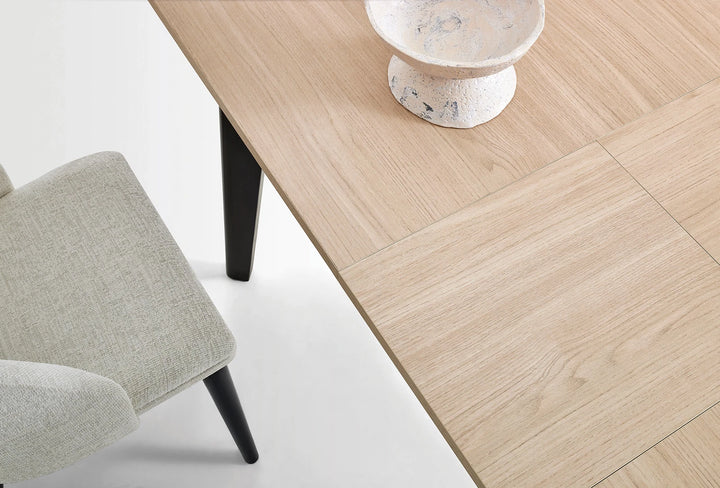 Offering a natural color palette and texture through the use of light oak, the TERRA WOODEN LEGS EXPANDABLE TABLE offers a modern look with its contemporary design.