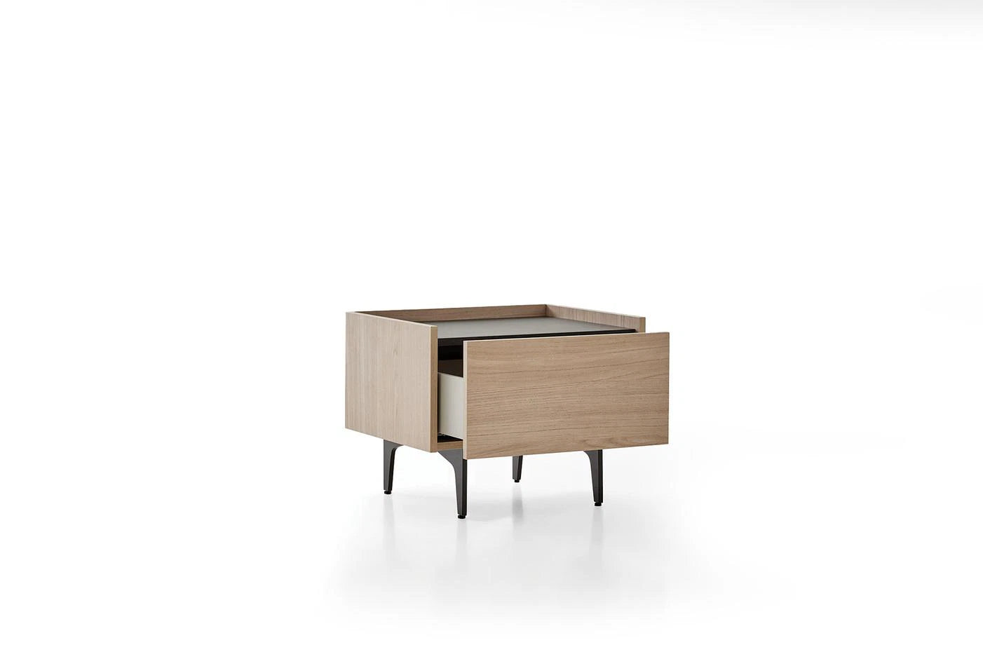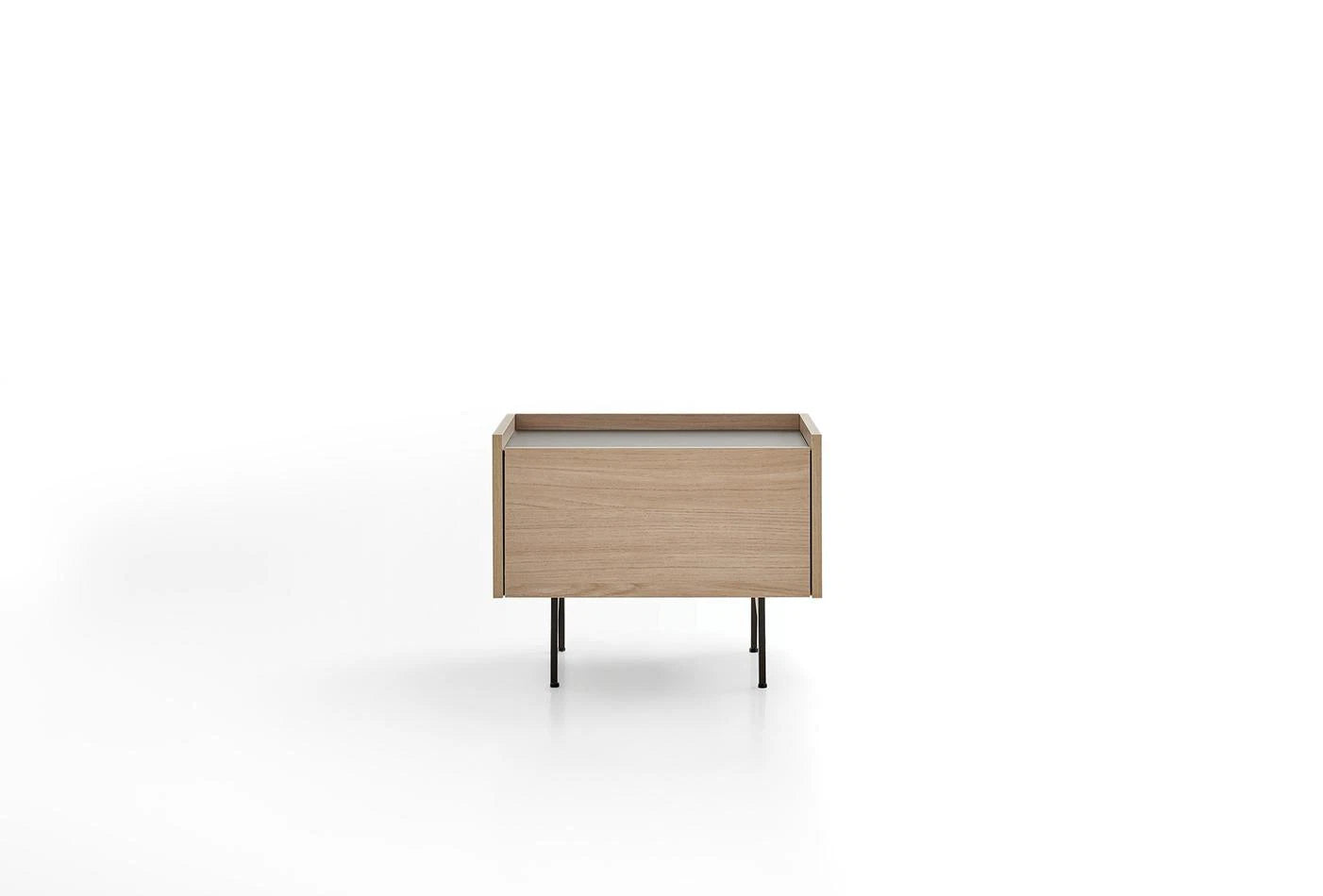 The TERRA BEDSIDE TABLE harmonizes with the rest of the TERRA series thanks to its metal legs. The bedside table has a drawer for extra storage space.