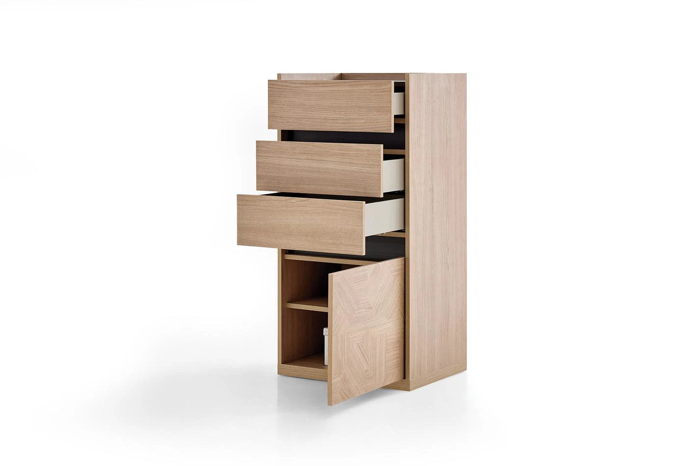 The TERRA HIGH CHEST OF DRAWERS; with its clean, natural appearance, is a top choice for modern homes. Decorated with elaborate details, the chest of drawers attracts attention with its contemporary design.
