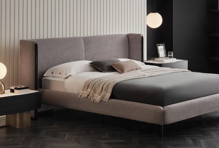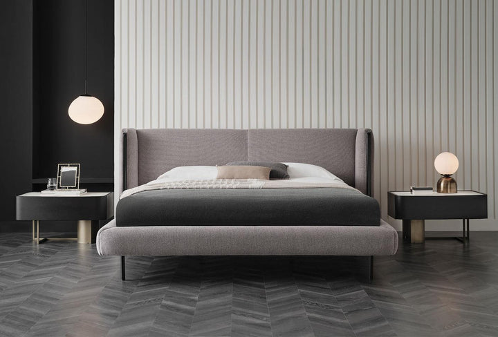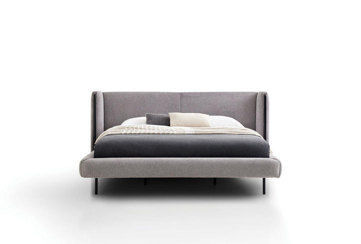 The black metal leg structure of the TUNIS BEDDING SET gives the bed frame a modern touch, while the wooden flap headboard design lends it a unique character.