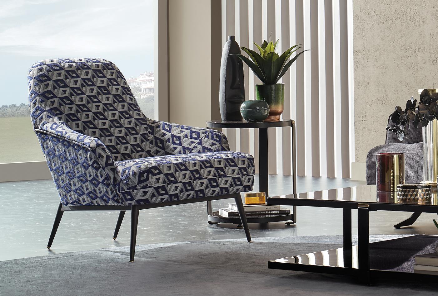 The VALDERA ARMCHAIR combines comfort with modern design with its soft texture and unique patterns. It is aesthetic and maximally comfortable, while the golden shine of its metal legs lends it elegance.