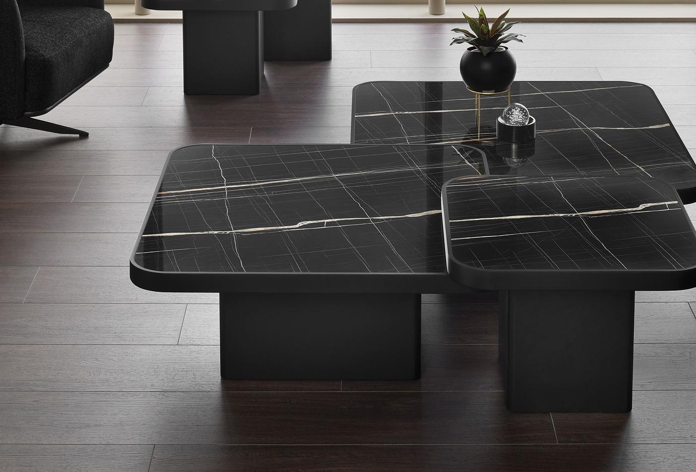 Drawing inspiration from modern design, the VALIO SMOKING TABLE combines a black top with marble-patterned details to bring an elegant touch to living spaces. Offering five different size alternatives to suit your needs, the VALIO SMOKING TABLE SERIES perfectly reflects the elegance of geometric design details.