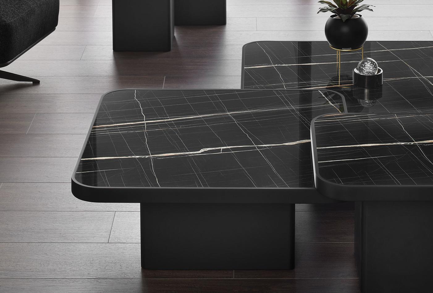 Drawing inspiration from modern design, the VALIO SMOKING TABLE combines a black top with marble-effect details to bring an elegant touch to living spaces. Offering five different size alternatives to suit your needs, the VALIO SMOKING TABLE SERIES perfectly reflects the elegance of geometric design details.