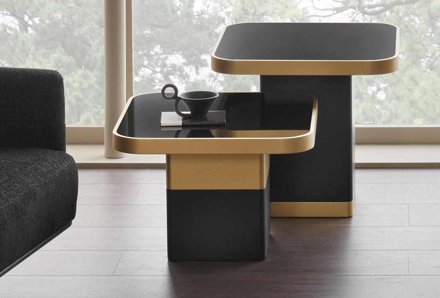 Drawing inspiration from modern design, the VALIO SMOKING TABLE brings an elegant touch to living spaces by combining its glossy black top with gold details on the legs.