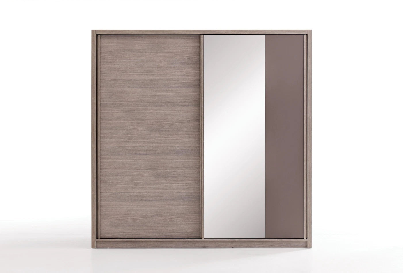The series features a unique oak and mink color combination, a natural-toned mirror application with a copper-colored metal handle design. 3 drawers and a trouser hanger provide extra storage space.