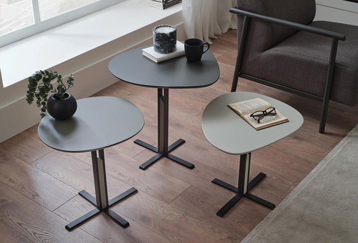 Combining its amorphous shape with 3 different size and color combinations, which creates a unique effect in the decoration, the VETROSA ZIGON TABLE brings a contemporary touch to living spaces with the natural elegance of gray gradients. Thanks to its modern zigon design, it provides a versatile and practical use advantage.