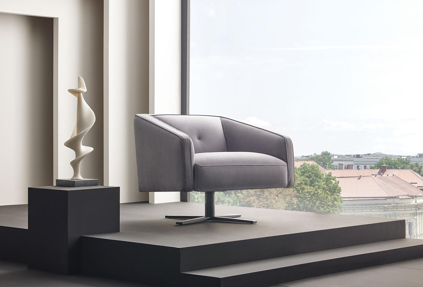Combining a modern look with timeless design details, the VICTORIA SWIVEL CHAIR is an iconic piece of the 2023 VISIONS collection.