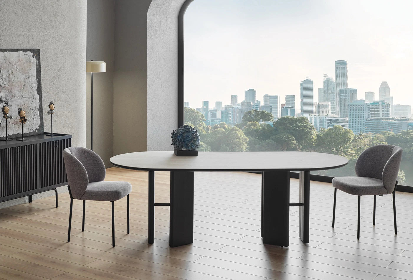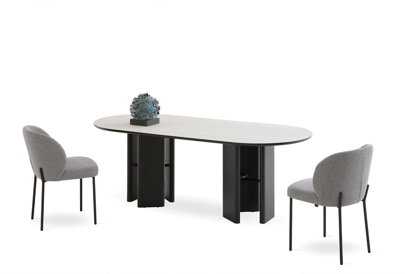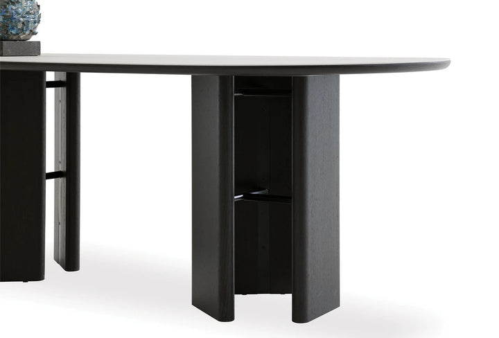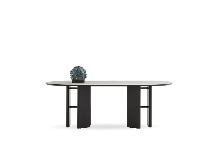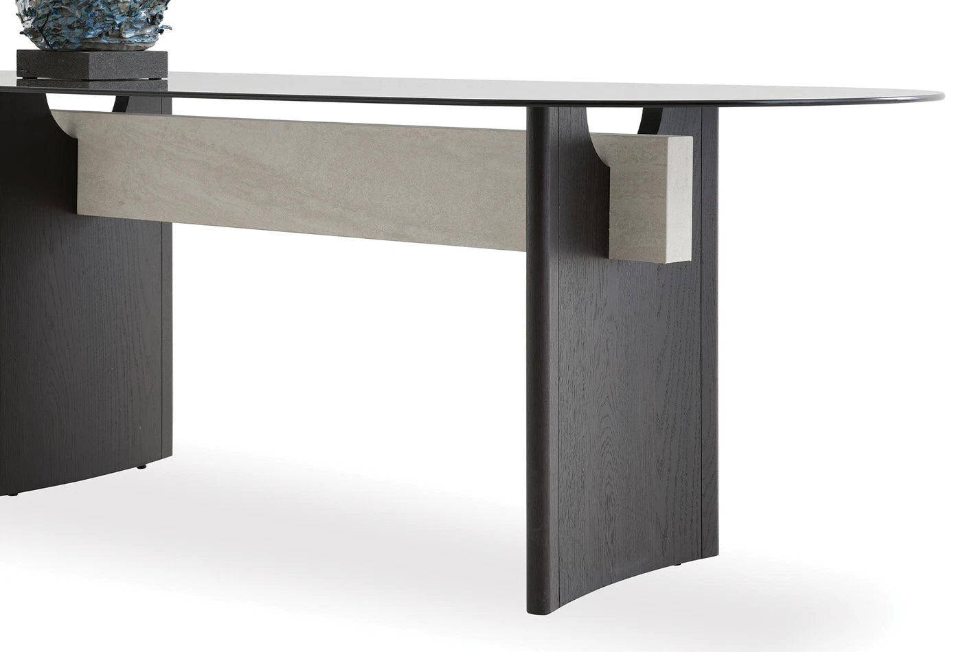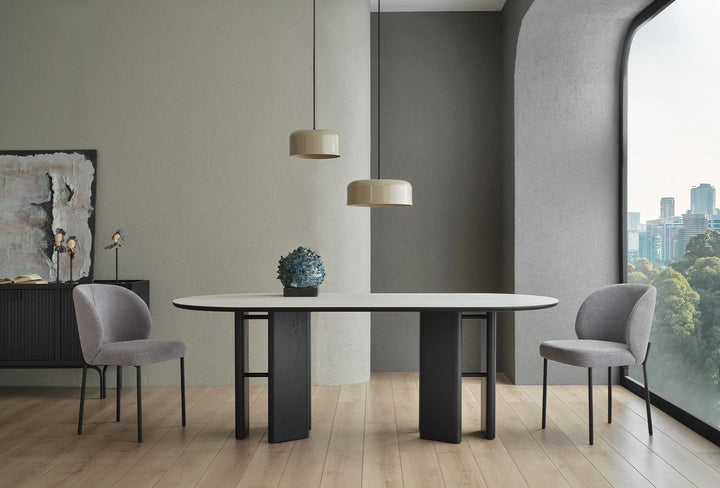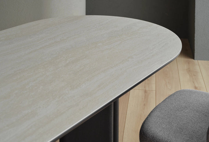 Az AUSTIN ÉTKEZŐASZTAL természetes megjelenésével minden lakótérbe illő, figyelemre méltó választás. Az MDF tölgyfa borítás a vázon és a lábakon hozzájárul az asztal természetesebb esztétikai megjelenéséhez. A felső felületen lévő kerámia bevonat gazdagítja az asztal dizájnját. Az asztal ellipszis formája elegáns megjelenést kölcsönöz.