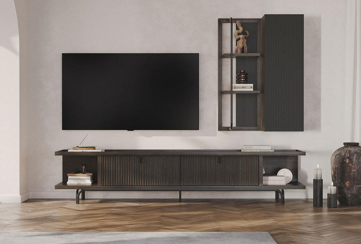 Az AUSTIN polcos szekrénysor stílusos megjelenésével esztétikus érintést kölcsönöz a lakótereknek. A szekrény kidolgozott designja lenyűgöző látványt nyújt.