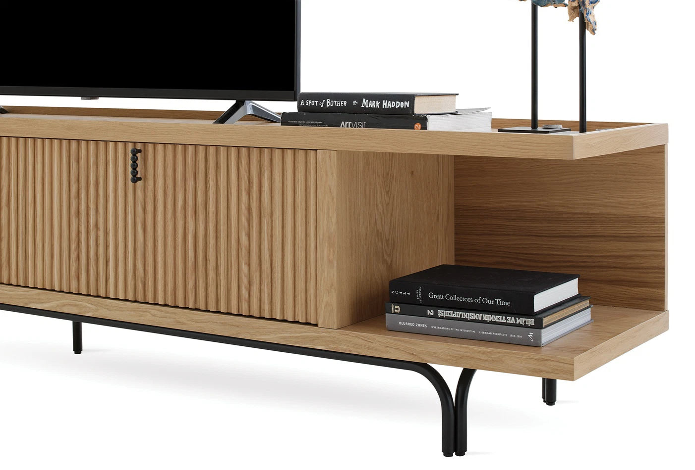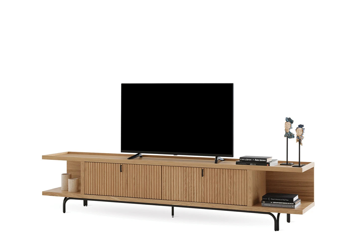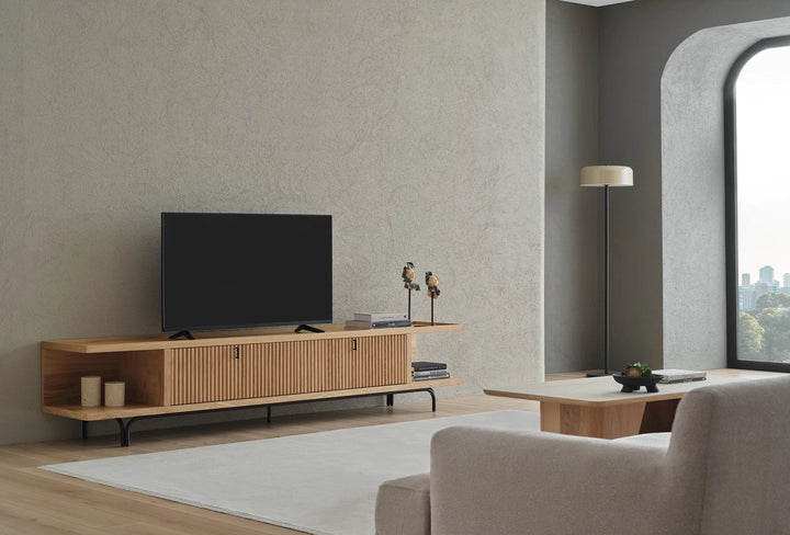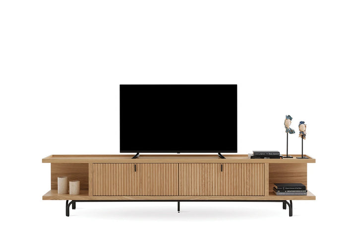 Az Austin Tv Állvány kidolgozott részleteivel elegáns érintést kölcsönöz az élettereknek. Letisztult esztétikájával az Austin Tv Állvány minimalista fekete fém fogantyú dizájnjának köszönhetően lenyűgöző látványt nyújt.