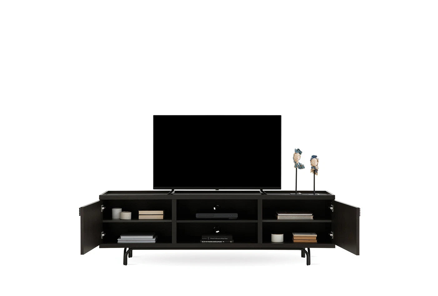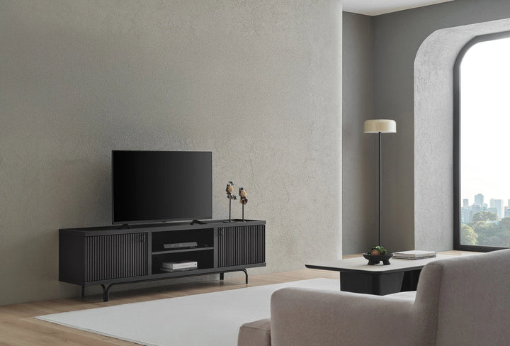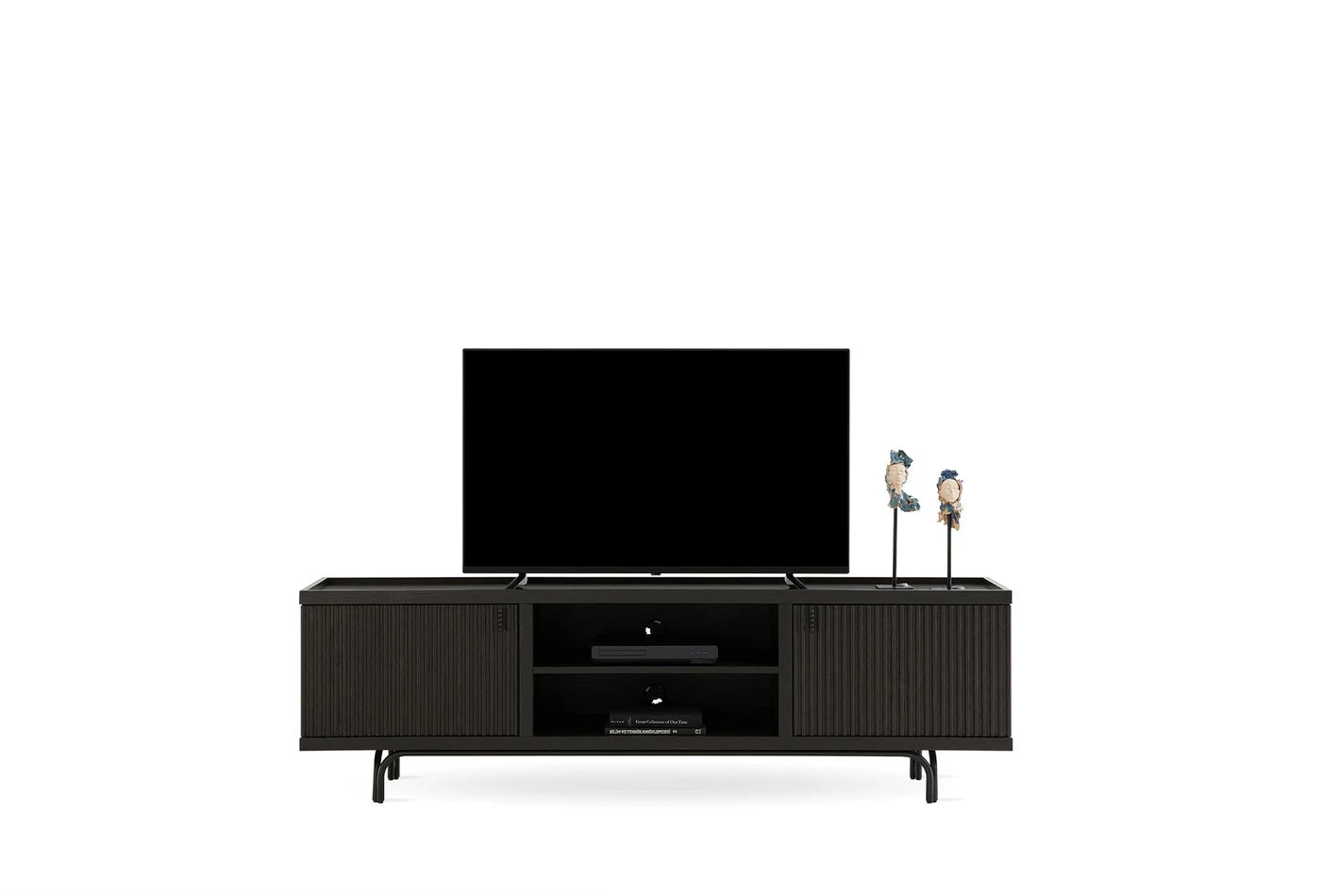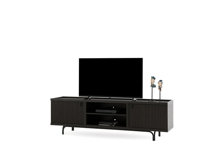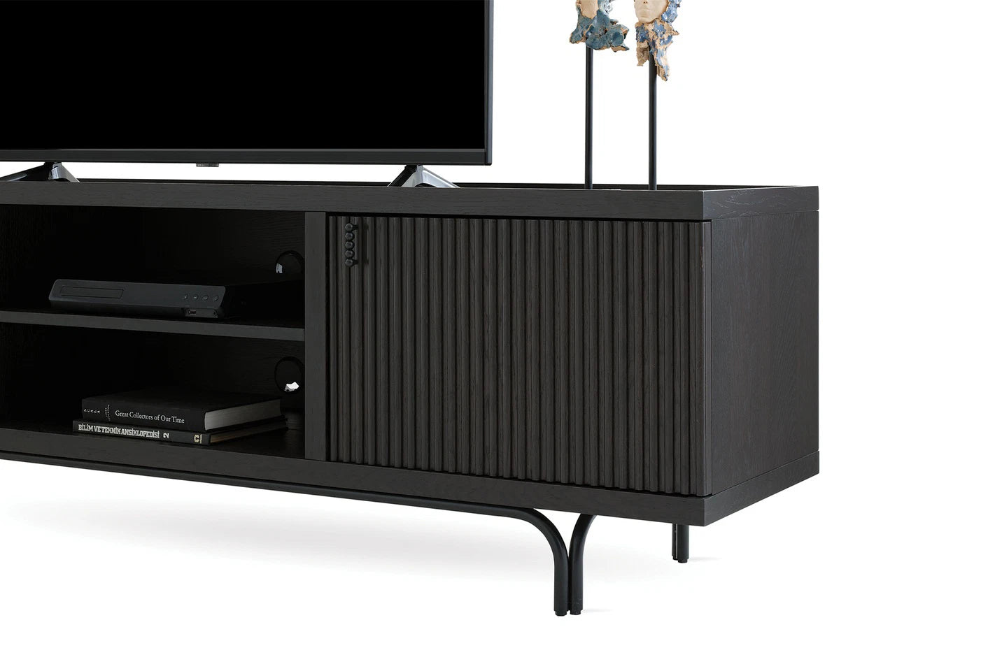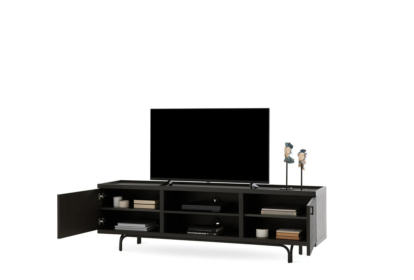 Az Austin Tv Állvány kidolgozott részleteivel elegáns érintést kölcsönöz az élettereknek. Letisztult esztétikájával az Austin Tv Állvány minimalista fekete fém fogantyú dizájnjának köszönhetően lenyűgöző látványt nyújt. A felső felületen lévő MDF-en tölgy furnér alkalmazása erősíti az állvány természetes megjelenését.