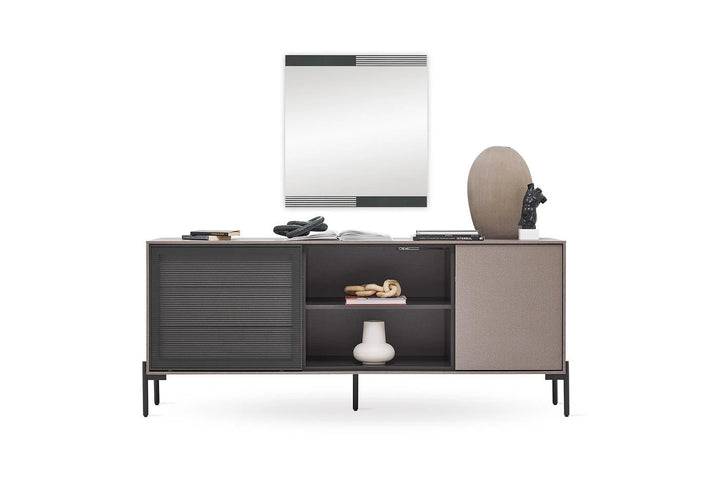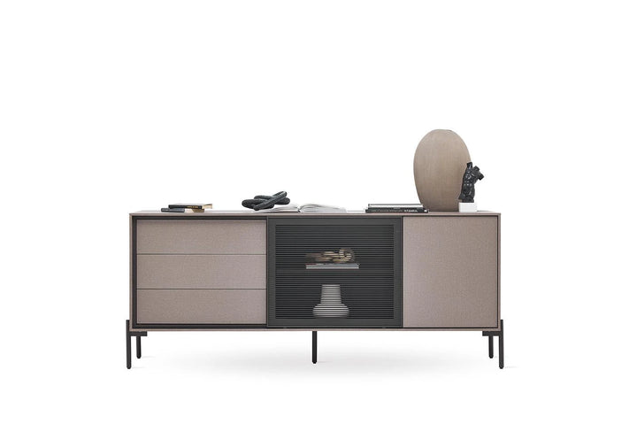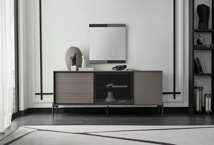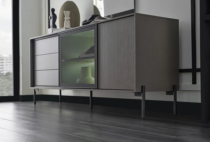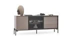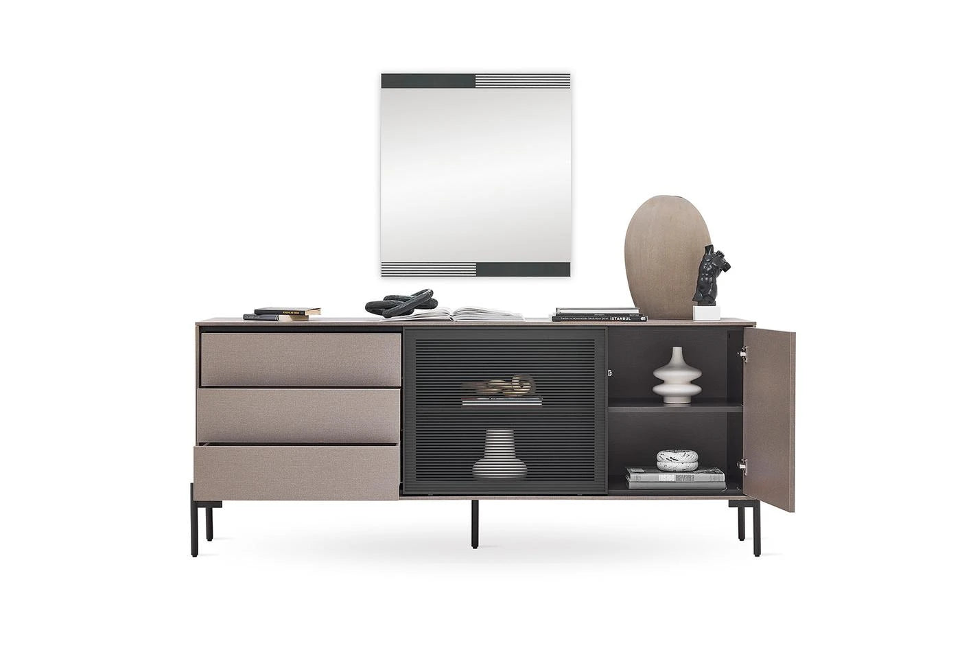 Nagyon dekoratív a kizárólag Enza számára kifejlesztett fémes csillogású, textil hatású felületeknek köszönhetően. Üveg- és faburkolatú ajtajaival valamint 3 fiókjával bőven elegendő helyet biztosít a tároláshoz, modern megjelenésével pedig feldobja a lakótereket.