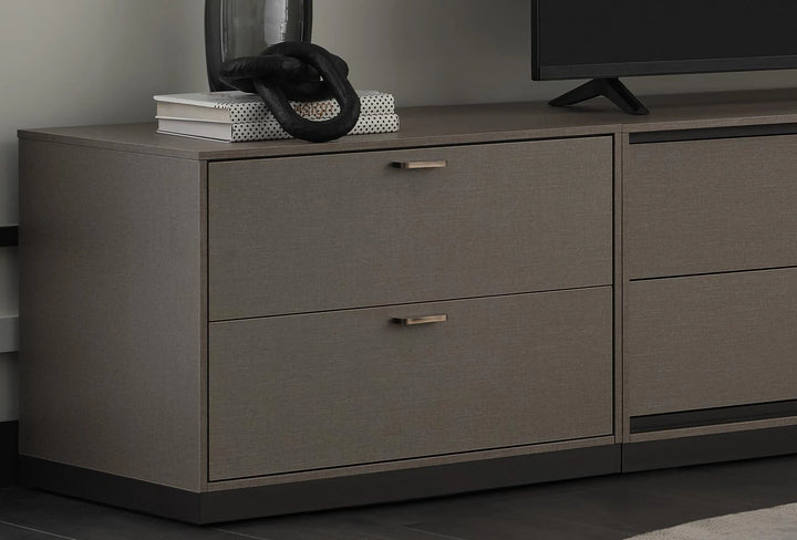 A sokoldalú funkcionalitást a minőségi dizájnnal ötvöző BERTA POLCOS SZEKRÉNYSOR-nak eredeti és kifinomult megjelenést kölcsönöz az Enza Home különleges textil hatású felületeinek alkalmazása, míg antik bronz színű fém fogantyúi esztétikusak és funkcionálisak.