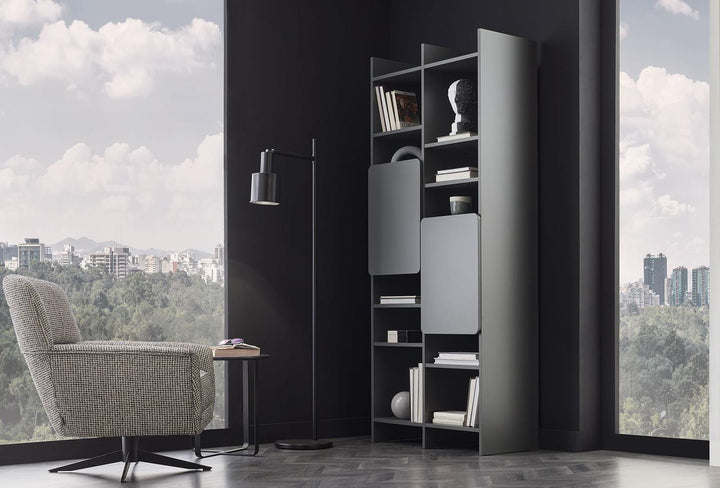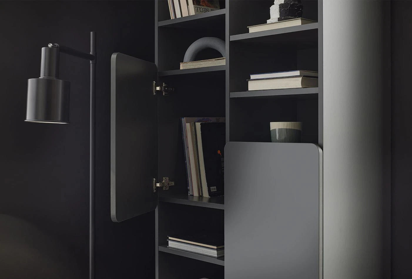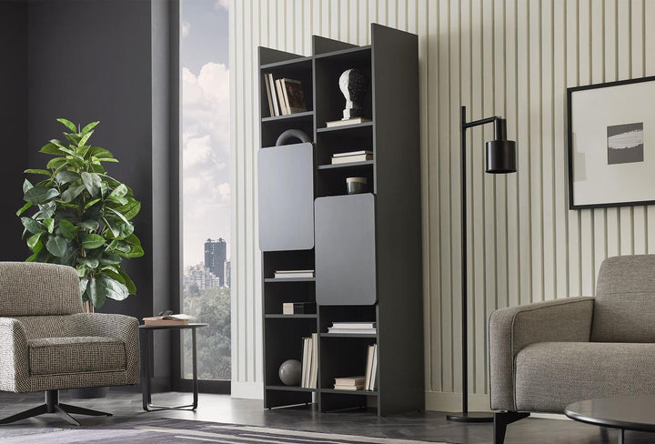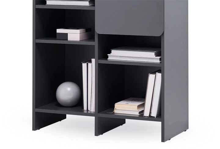 Több moduljával kombinálható BLEND KÖNYVESPOLC, lenyűgöző atmoszférát teremt, miközben a sötétszürke szín nyugalmat árasztó hangulatával teszi teljessé hatásos megjelenését.